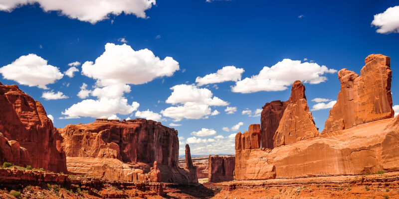 Krajina oblouků a červených skal národního parku Arches. Více než 2 000 přírodních pískovcových oblouků vytváří surrealistickou scenérii, která vypadá jako z jiného světa. Rudé skály, přírodní oblouky a ticho pouště vytvářejí atmosféru, která se nedá popsat – musí se zažít. Největší ikonou je Delicate Arch, osamělý oblouk na okraji útesu, který se při západu slunce rozzáří do oranžova. Ale park nabízí mnohem víc – Double Arch, Landscape Arch, nebo tajemné Fiery Furnace, kam se dostanete jen s průvodcem. Každý krok je jako objev.