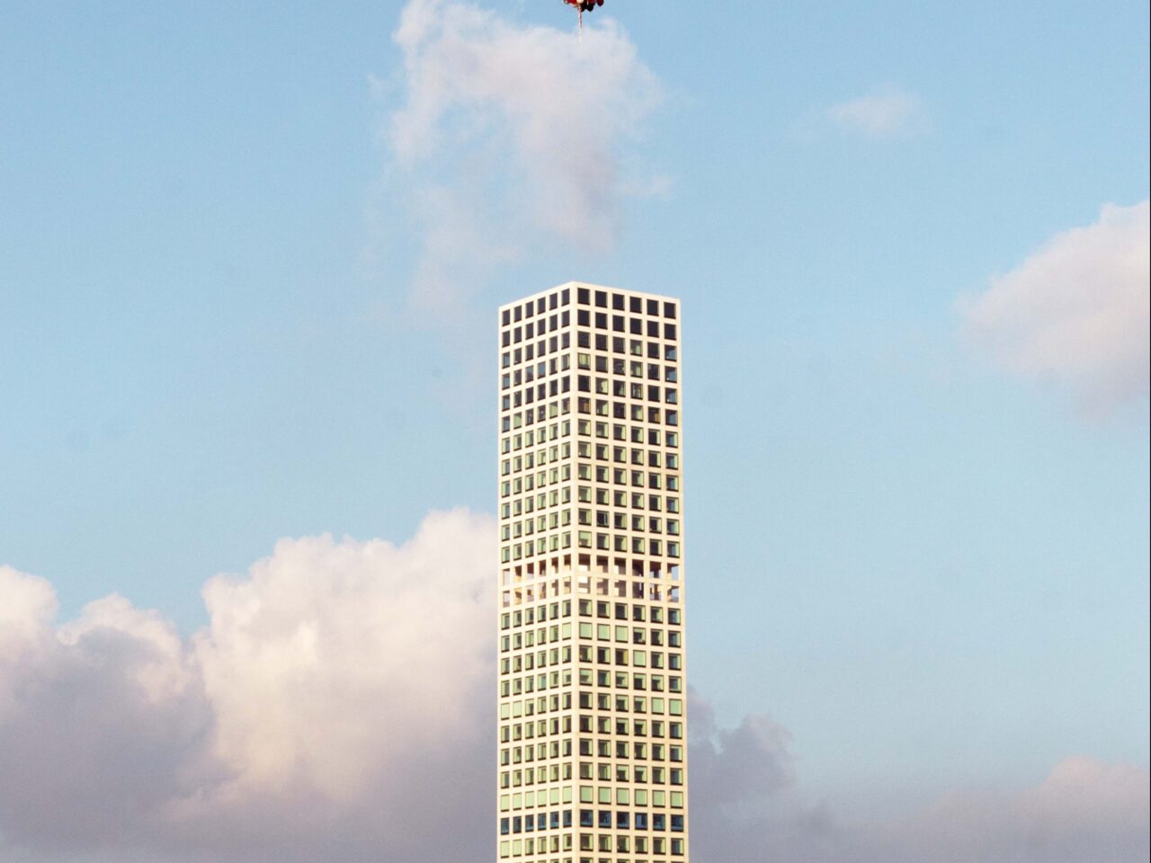 Procházíte-li kolem, musíte pořádně zaklonit hlavu, abyste dohlédli až na vrchol. A občas se vám to ani nemusí podařit. Když není zrovna slunečno, nejvyšší část domu je v mlze nebo dokonce v mracích.
