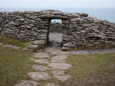 Odpoledne navštívíme Clochán Mór, typické na sucho stavěné kamenné chýše, kdy se díky technice samotné konstrukce nepoužíval žádný pojící materál.