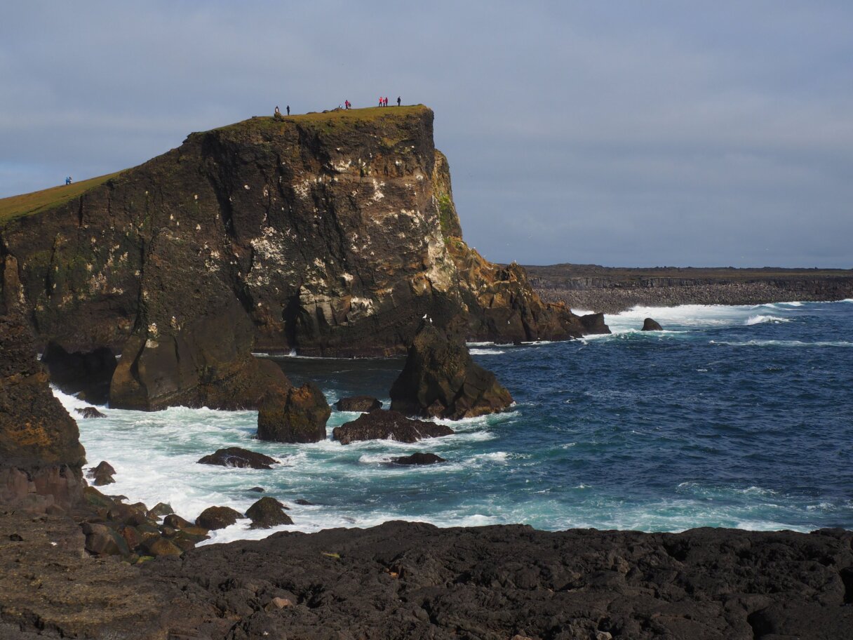 Poté budeme pokračovat k útesům nedaleko Hælsvíku. Tato 40-metrů vysoká skaliska se každoročně stávají hnízdištěm tisíců mořských ptáků.