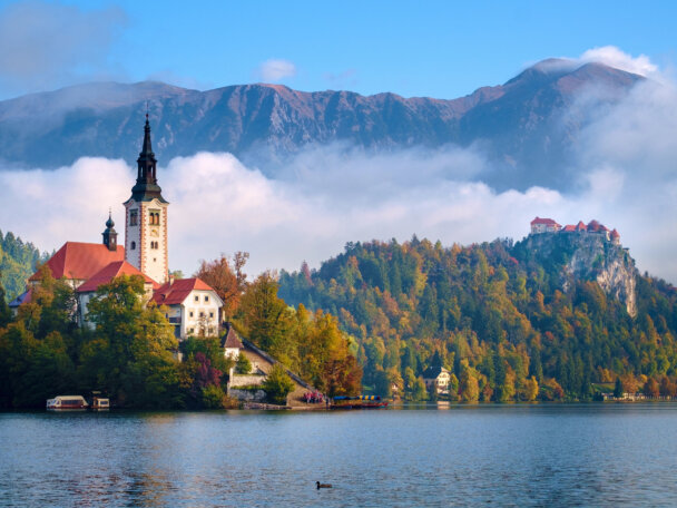 Kolem poledne dorazíme do Slovinska a naše putování zahájíme na nejikoničtějším místě u jezera Bled. Odpoledne strávíme přímo u jezera, které nabízí celou řadu aktivit. Zájemci můžou navštívit Bledský hrad, který se tyčí vysoko na skále nad jezerem. Pokud budeme mít chuť, poplujeme tradiční loďkou „pletnou“ na jediný slovinský ostrov s kostelem Panny Marie.