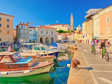 Odpoledne strávíme v jednom z nejkrásnějších slovinských městeček v Piranu. Křivolaké úzké uličky a vůně moře nám napoví, jak silně bylo slovinské pobřeží ovlivněno italskou kulturou. Prohlédneme si Tartiniho náměstí a dojdeme až na samý cíp poloostrova ke kostelu sv. Klimenta. Z útesu u kostela sv. Jiří si užijeme krásné výhledy na chorvatské i italské pobřeží, Terst a za dobrého počasí až na Benátky. Pokud budeme mít chuť, ochutnáme i některá místní vína a olivové oleje z oblasti Primorska.