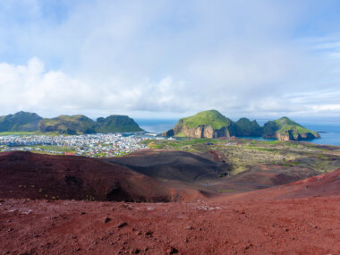 Zájemci se mohou vydat na sopku Eldfell, jejíž vznik se datuje terpve do roku 1970 a užít si výhledy z jejího vrcholu do širokého okolí.