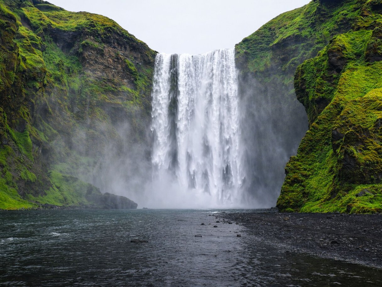 Další zastávkou bude monumentální vodopád Skógafoss, jehož vodní stěna vysoká 60 metrů padá s ohlušujícím hukotem do údolí. Za slunečného počasí se zde často tvoří nádherné duhy, které dodávají místu pohádkovou atmosféru.