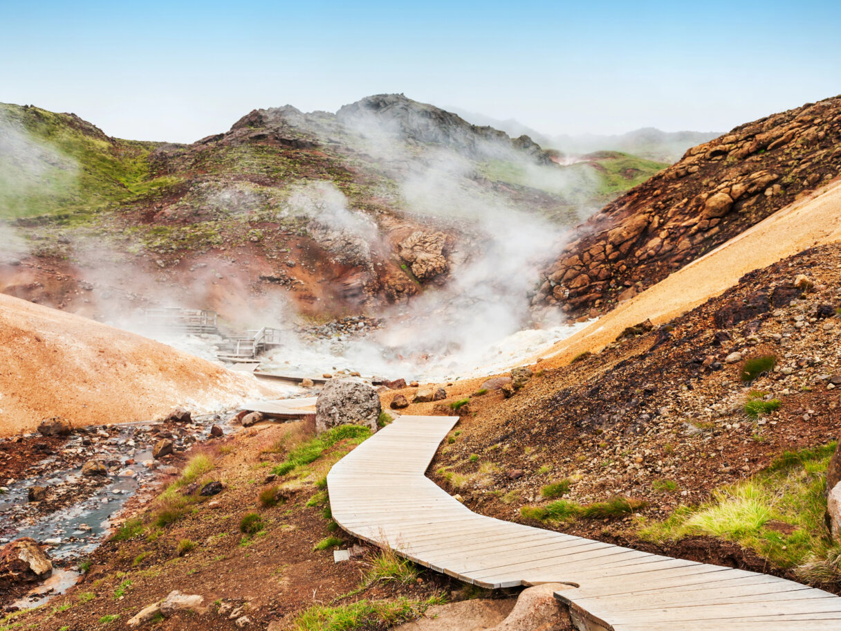 Zastavíme se také u vřídla Hunnuhver, kde si ukážeme přímo exemplární příklady geotermální aktivity.