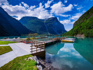 Přes městečko Dombås, kde si nakoupíme na piknik, budeme pokračovat směrem na sever. Projedeme podél řeky Rauma, jež protéká soutěskou Romsdalen, kde uvidíme nejvyšší převislou skalní stěnu Evropy a bude to dozajista dech beroucí podívaná. V podvečer se dostaneme až do městečka Åndalsnes, kde se ubytujeme. Město Åndalsnes je proslulé svými vysokými vrcholy a dlouhou horolezeckou historií, proto je známé jako alpská vesnice u fjordu.