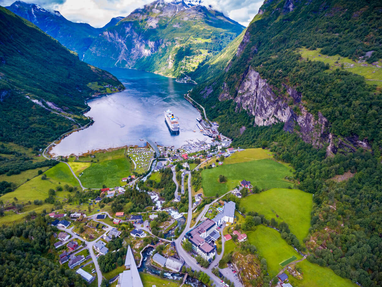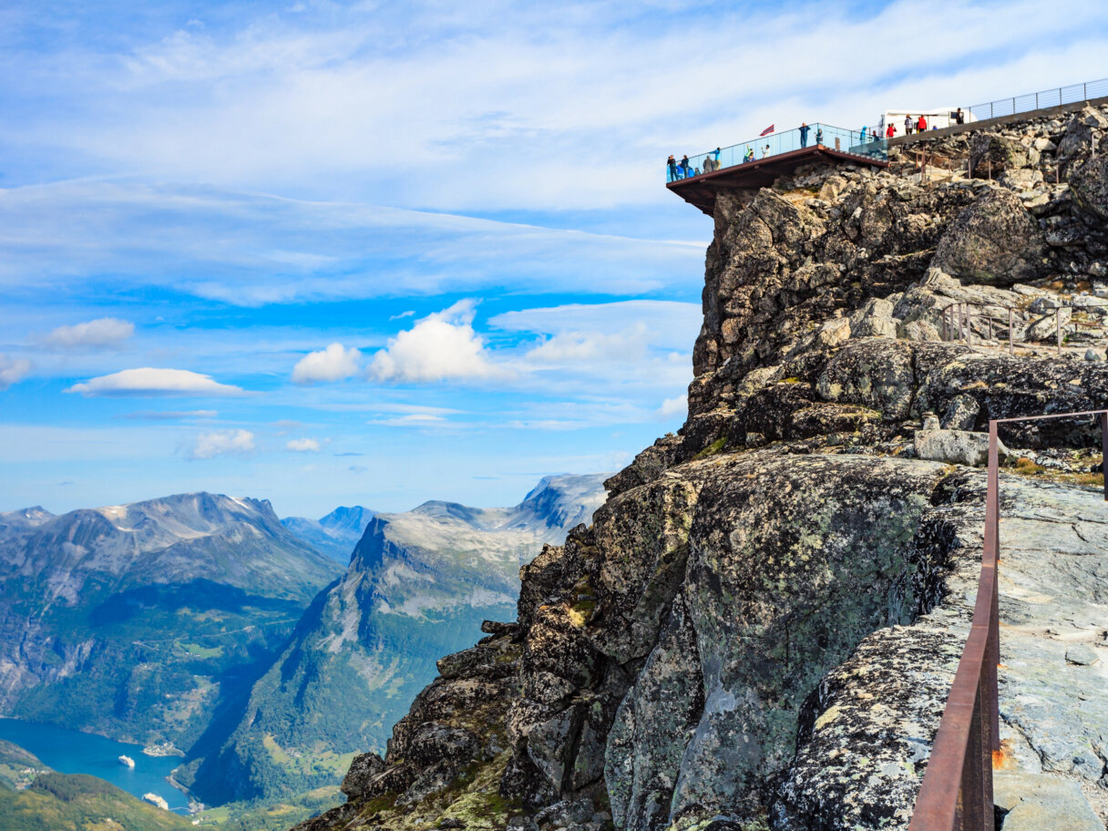 Storfjord překonáme pomocí trajektu a budeme pokračovat po Cestě orlů klikatící se po straně smaragdově zeleného fjordu Geirangerfjord a budeme se kochat výhledy na okolní krajinu. V podvečer dojedeme do Geirangeru, jenž leží stísněn mezi vysokými útesy Geirangerfjordu zapsaného na seznamu UNESCO.