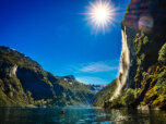 Po snídani si užijeme pohodovou plavbu po jezeře Geirangerfjord(UNESCO). Budeme obdivovat jednu z nejkrásnějších a nejdramatičtějších fjordových scenérií v celém Norsku. Podíváme se zblízka na slavné vodopády „Sedm sester“, „Svatební závoj“ a „Nápadník“, majestátní útesy fjordu a opuštěné horské farmy. Když budeme mít štěstí, uvidíme, jak si ve fjordu hrají sviňuchy.